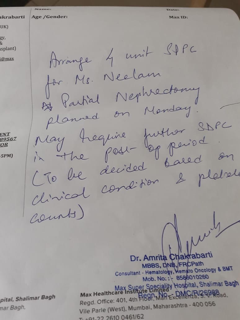 I need platelets for my sister in Max Hospital Shalimar Bagh